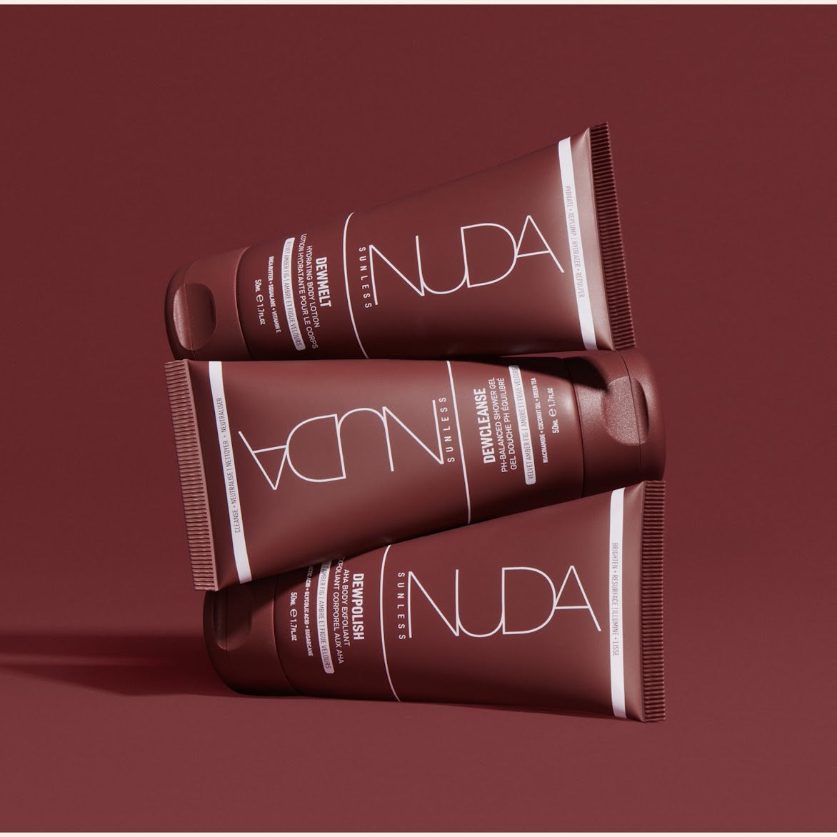 Un trio de soins corporels en format voyage (50 ml), idéal pour préparer, nettoyer et hydrater la peau avant et après l’application de votre autobronzant :